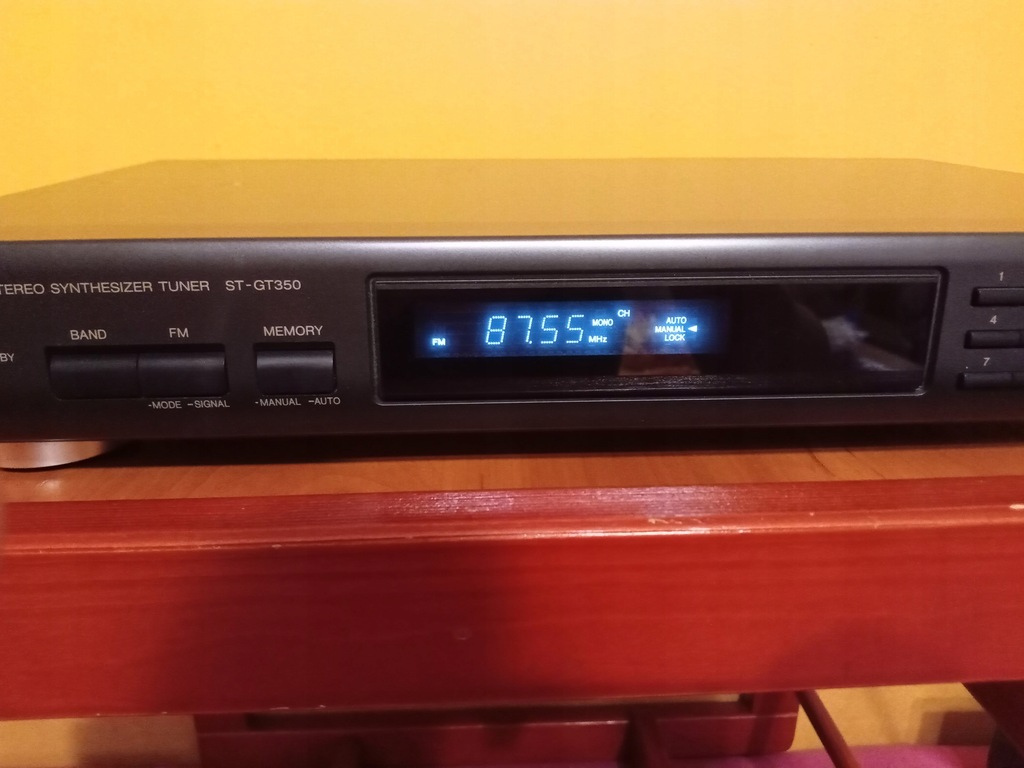 Na dzisiejszej aukcji mam do zaoferowania TECHNICS TUNER STEREO model ST GT-350 pochodzacy z mojej prywatnej kolekcji. Sprzet w pełni sprawny, zadbany. Komuś posłuży jeszcze długie lata. Tuner ma pamieć 30 stacji oraz wbudowany cyfrowy synezer co wpływa znacząco na jakość odbioru. Oprocz tego posiada wygodne w obsłudze pokrętło, cyfrowy wskaźnik poziomu sygnału, automatyczne wyszukiwanie i zapamietywanie stacji.