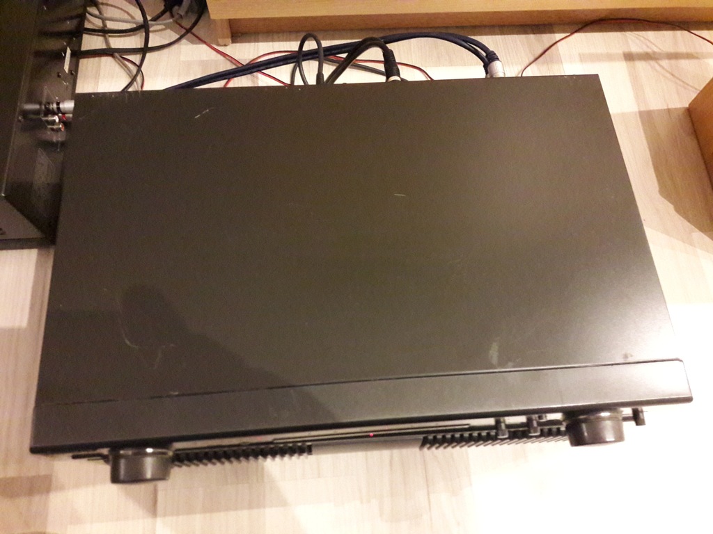 Technics wzmacniacz dwuczęściowy z pilotem. Stan optyczny jak na zdjęciach. Fronty stan bdb. Obudowy ślady jak no foto. Pilot i kable (zasilający, cinch i łączący dwa elementy) w zestawie. Technicznie wszystko działa poza pokrętłem sopranu, tzn. jak się kręci to nic się nie zmienia. Sopran gra na poziomie środkowym ale go nie można ustawić, regulować.