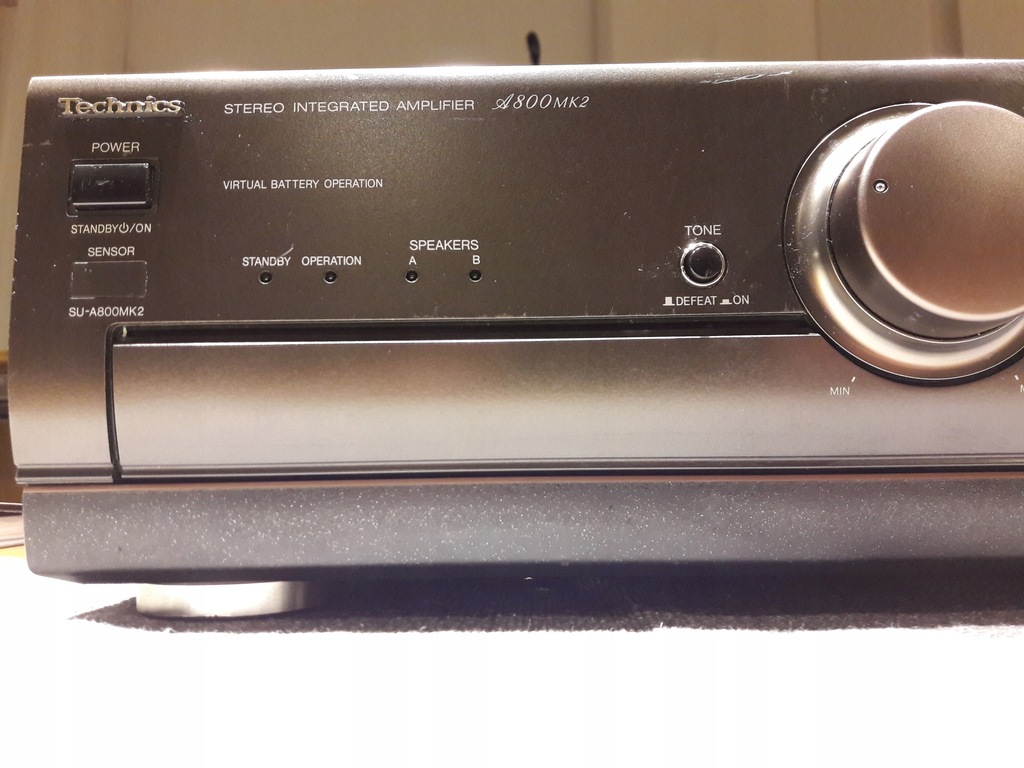 Technics wzmacniacz SU-A800MK2 technicznie działa jak należy w stanie bdb. Optycznie znajdą się ślady używania jak na zdjęciach widoczne. Brak pilota. Kabel zasilający w komplecie.