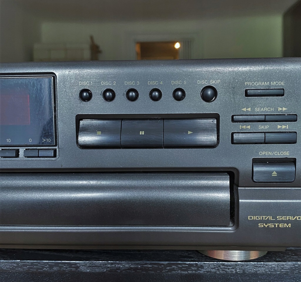 - Ładowana od przodu 5-plytowa zmieniarka o obrotowej konstrukcji (pozwalająca podczas odtwarzania jednej płyty zmienić cztery pozostałe),