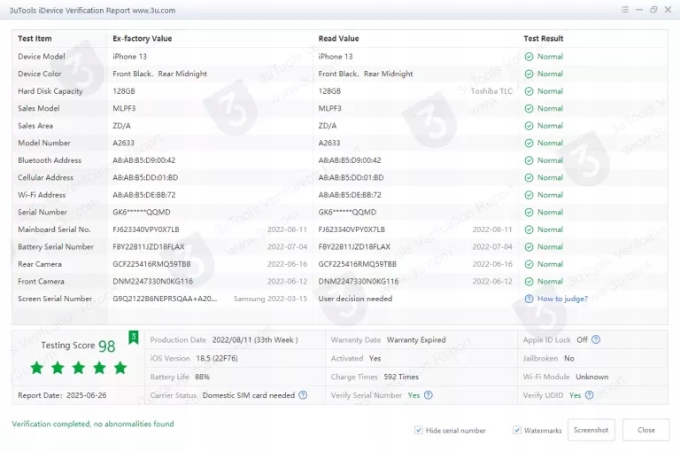 - Model: iPhone 13