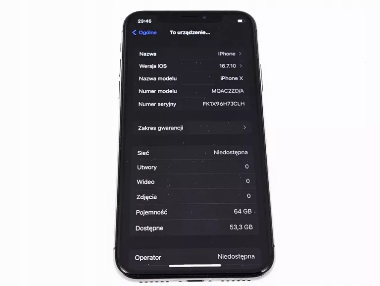 - Funkcje i system: wszystkie funkcje działają bez zarzutu, telefon odświeżony do najnowszego możliwego systemu iOS.
