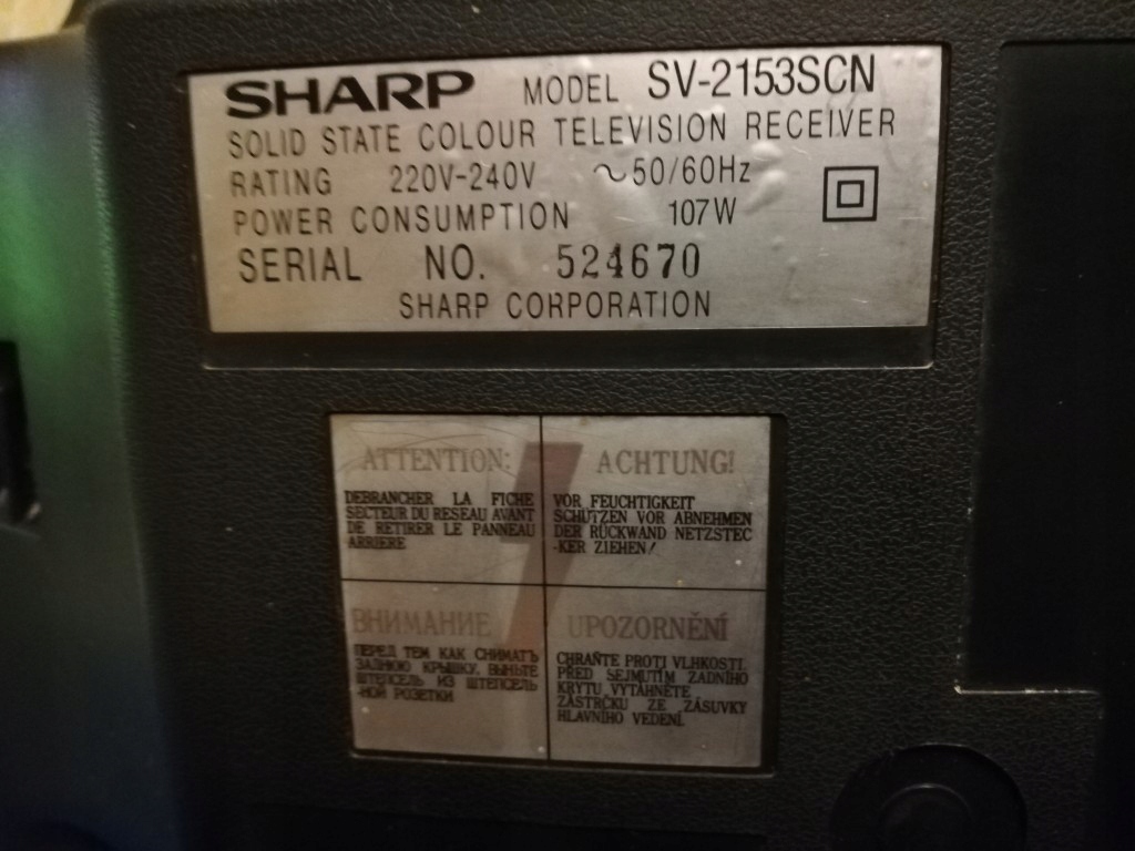 Do sprzedania posiadam stary telewizor kineskopowy 21" firmy SHARP SV-2153SCN.