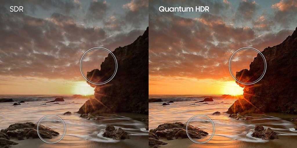 Powyżej przykład zrównoważonego kontrastu z bogatą paletą wyświetlanych kolorów. Quantum HDR 1000* to nowy wymiar udoskonalonego obrazu, co sprawia, że nie możesz oderwać od niego wzroku.