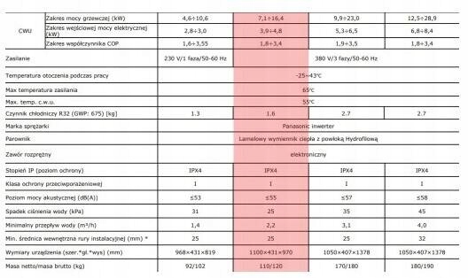 • trwała sprężarka marki Panasonic (seria Platinum) lub Mitsubishi (seria Gold)