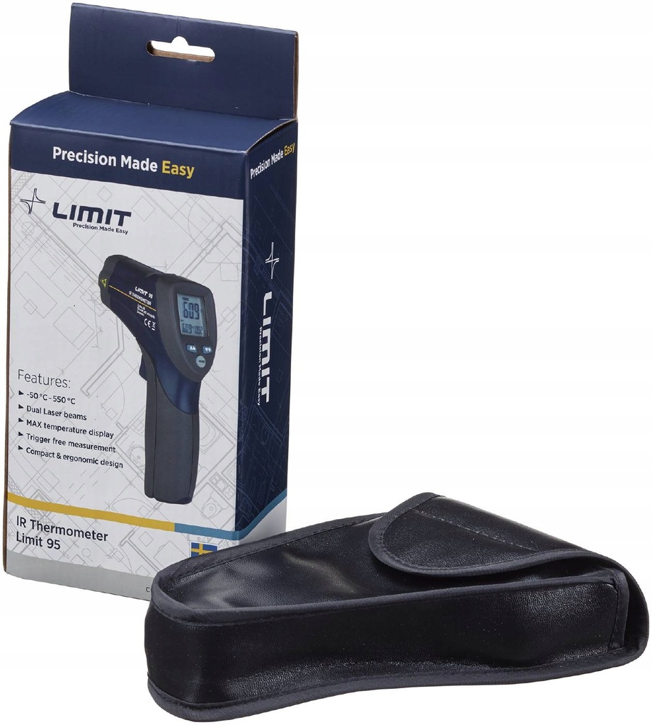 - Termometr bezdotykowy na podczerwień Limit 95 to profesjonalne urządzenie do pomiaru temperatury powierzchniowej w zakresie od -50 do 550°C. Dzięki ergonomicznemu kształtowi i wygodnym przyciskom jest łatwy w obsłudze.