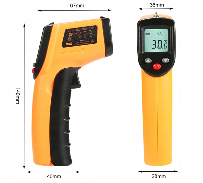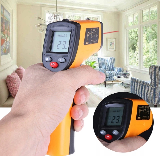 ✅BEZDOTYKOWY POMIAR - bezkontaktowy termometr na podczerwień pozwala na precyzyjne zmierzenie temperatury w zakresie -50 ~ 380°C. Laserowy celownik ułatwia pracę z urządzeniem.