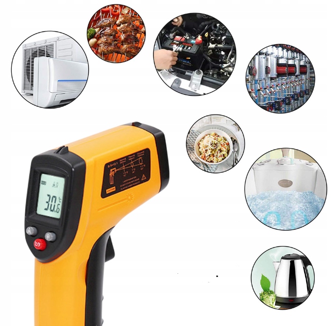 ✅UNIWERSALNY - pirometr znajduje szerokie zastosowanie w przemyśle motoryzacyjnym, maszynowym, w branży budowlanej, chłodnictwie, gastronomii, przemyśle spożywczym. Szczególnie przyda się przy pomiarze rzeczy niebezpiecznych (np. bardzo gorących, zimnych).