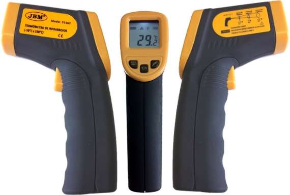 • pomiar technologią podczerwieni, • tolerancja ± 2°C, • celownik laserowy, • przełączanie skali°C /°F, • pamięć pomiarów, • wskazanie niskiego poziomu baterii, • zasilany baterią R9.