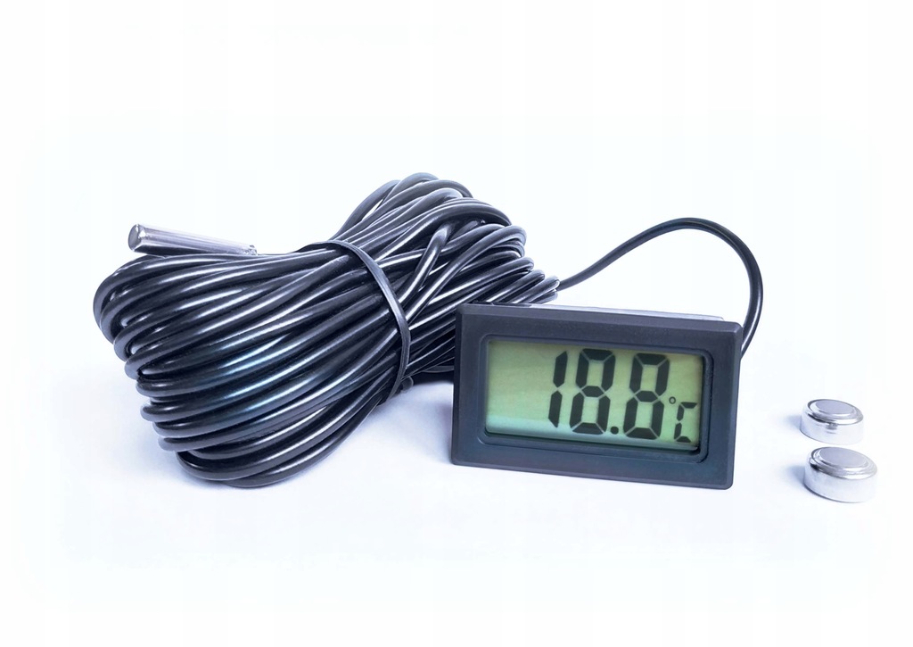 ELEKTRONICZNY TERMOMETR PANELOWY Z SONDĄ NA 10 METROWYM PRZEWODZIE.
