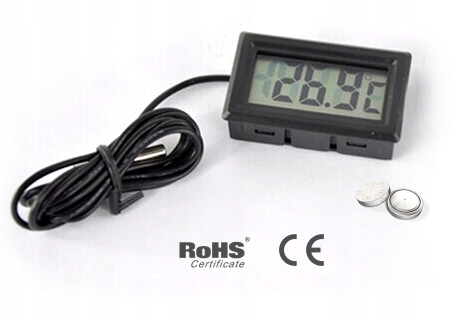 Termometr elektroniczny, panelowy o bardzo szerokim zastosowaniu. Urządzenie posiada długi 10 metrowy przewód na końcu którego znajduje się sonda do pomiaru temperatury.
