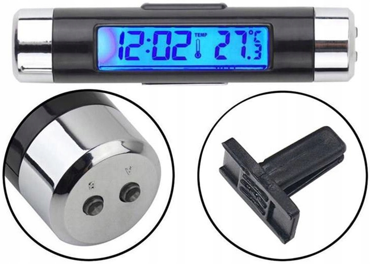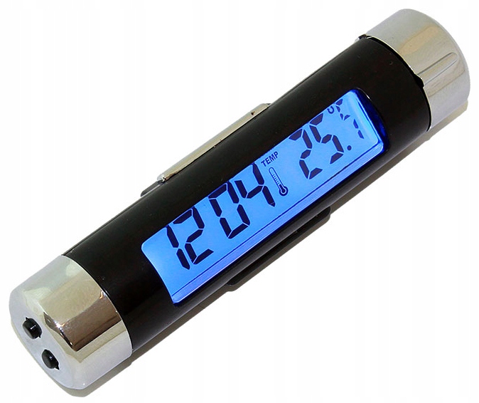 Niezwykle estetyczny gadżet który doskonale wkomponuje się jako dodatkowy element wyposażenia naszego auta. Umożliwia pomiar temperatury wewnątrz auta za pomocą wbudowanego czujnika. Termometr posiada duży, czytelny wyświetlacz LCD z niebieskim podświetleniem (zasilanie z wewnętrznej baterii). Klips umożliwia przypięcie gadżetu do kratki nawiewu w kabinie. W zestawie mocna dwustronna taśma klejąca do łatwego zamocowania termometru na tapicerce samochodu.