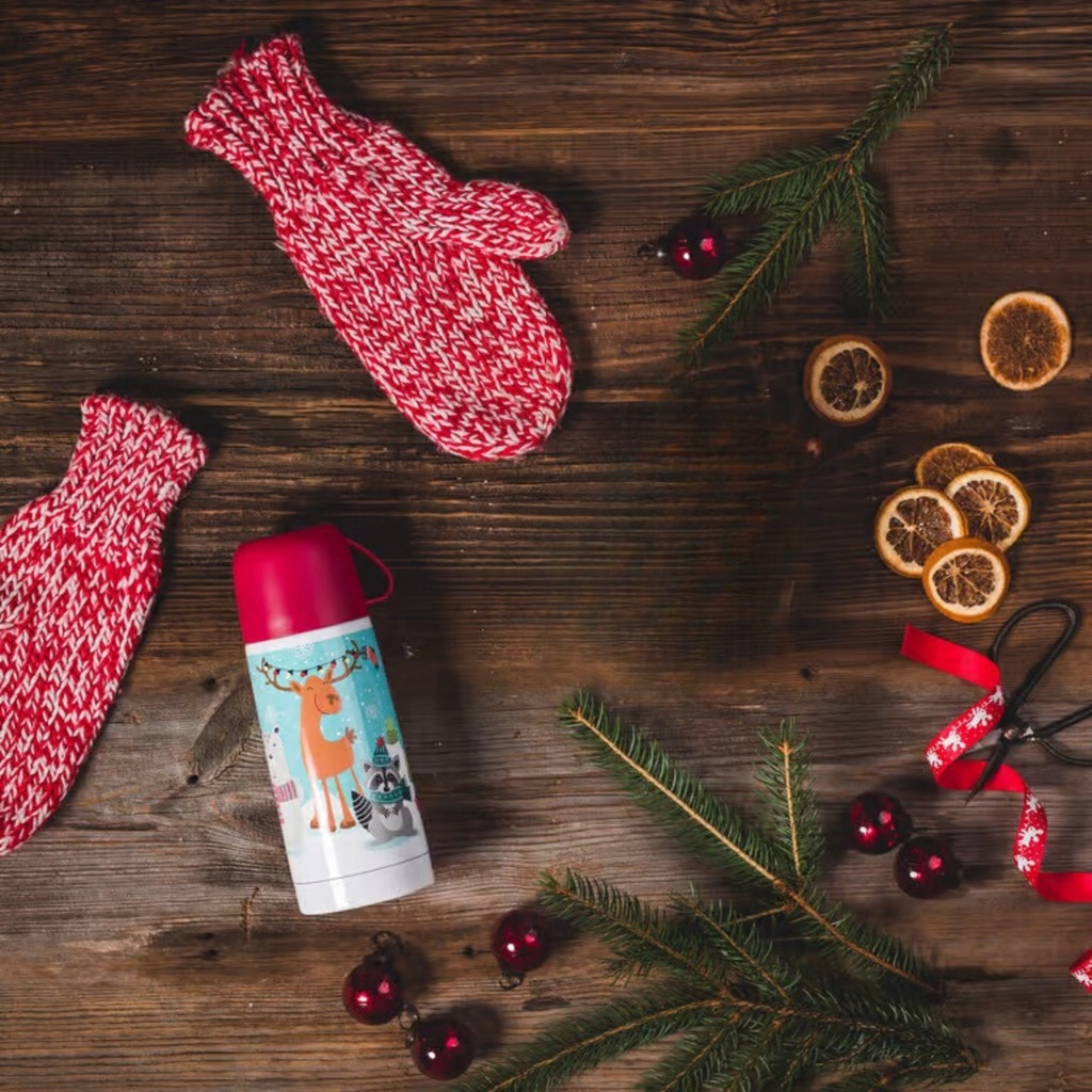 ✅ Design z zimowymi bohaterami: wiewiórka, renifer, niedźwiadek i szop.
