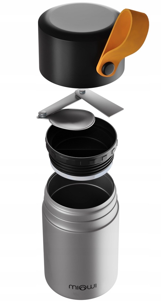 Termos obiadowy, którego budowa zapewnia niezrównane parametry termiczne i wytrzymałość, posiada dodatkowo praktyczną i inteligentną funkcję, która zdecydowanie wyróżnia go na tle innych produktów. Jego nakrętka, wykonana z tworzywa sztucznego, służy jako miska, co pozwala na wygodne spożywanie posiłku, bez potrzeby noszenia dodatkowych naczyń. W nakrętce ukryta jest składana, stalowa łyżka - doskonale zaprojektowana, aby pasować do rozmiaru termosu i zawsze być pod ręką, gdy tylko zechcesz skosztować swojego ciepłego posiłku.