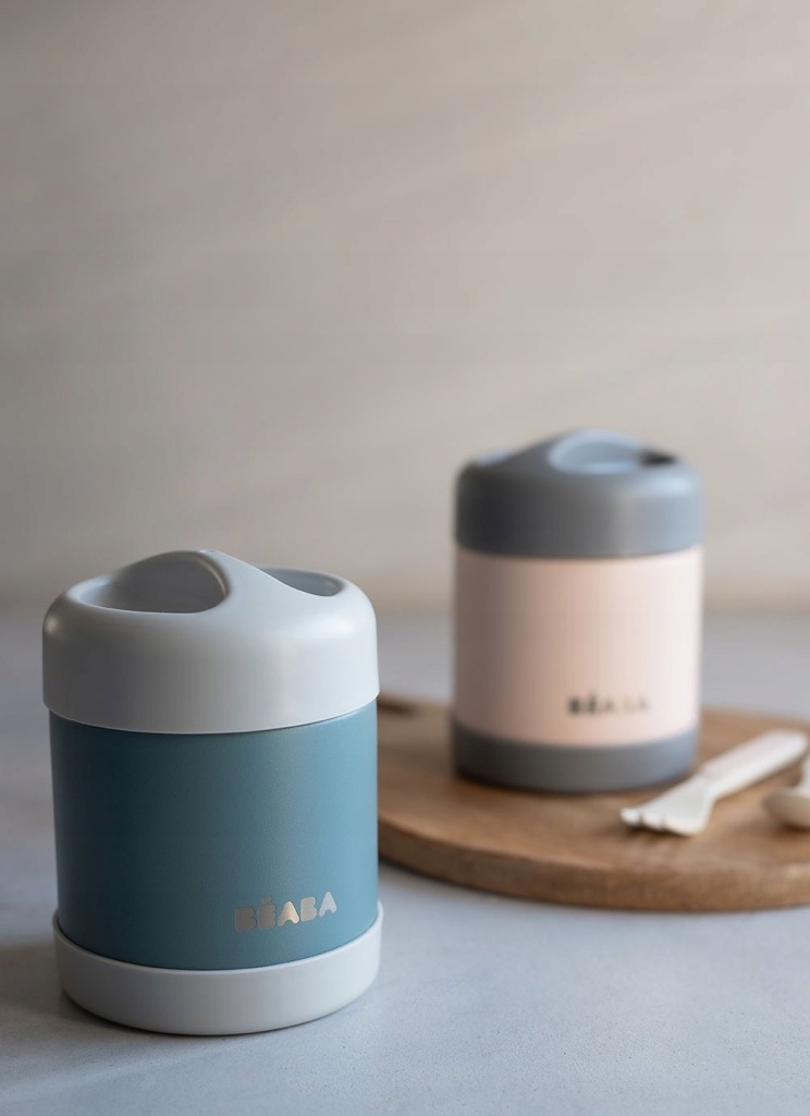 Termos obiadowy francuskiej marki BEABA przyda się nie tylko podczas podróży, ale i spacerów czy wycieczek. Ma pojemność 300 ml, ergonomiczny kształt, jest lekki, poręczny i wytrzymały. Wykonany z najwyższej jakości stali nierdzewnej – odpornej na korozję, zarysowania i wszelkie uszkodzenia. Ponadto stal nierdzewna nie chłonie smaków i zapachów, nie wchodzi w reakcję z żywnością, nawet tą najbardziej kwaśną, jest łatwa w utrzymaniu czystości oraz – co równie ważne - w 100% bezterminowo podlega recyklingowi. Dzięki podwójnym stalowym ściankom, pojemnik długo zachowuje temperaturę posiłków, zarówno gorących (do 5h), jak i zimnych (do 7h). Szeroki otwór ułatwia jego napełnianie, użytkowanie i czyszczenie. Hermetyczna pokrywka z solidnego, nieodkształcającego się polipropylenu z silikonową uszczelką doskonale przylega do pojemnika i zapewnia szczelność naczynia, co pozwala także zachować smak i aromat jedzenia. Pokrywka ma profilowany uchwyt, ułatwiający otwieranie.