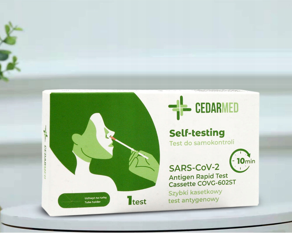 CEDARMED SARS-CoV-2 Antigen Rapid Test Cassette COVG-602ST test antygenowy jest przeznaczony do samodzielnego wykonania. Jest to test do ilościowego wykrywania nukleokapsydu z SARS-CoV-2 w próbce pobranej z wymazu z przedniej części nosa. Badanie można wykonywać zarówno u osób wykazujących objawy zakażenia (w ciągu pierwszych 7 dni od wystąpienia symptomów), jak i u osób, u których nie występują żadne objawy.