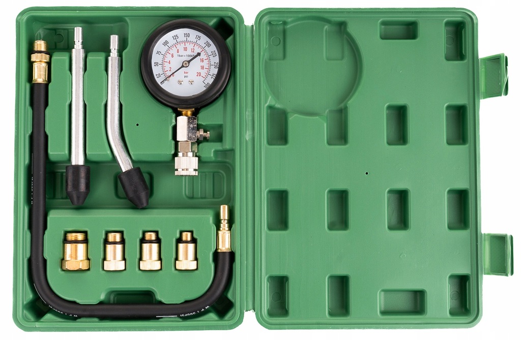 Zestaw służy do kontroli ciśnienia sprężania w cylindrach silników benzynowych