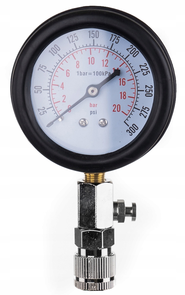 ✅ Manometr analogowy o skali 0-20 bar (0-300 PSI) umożliwia łatwe odczytanie wyniku pomiaru. Jest to przydatne narzędzie dla mechaników, którzy muszą szybko i dokładnie ustawić poziom kompresji