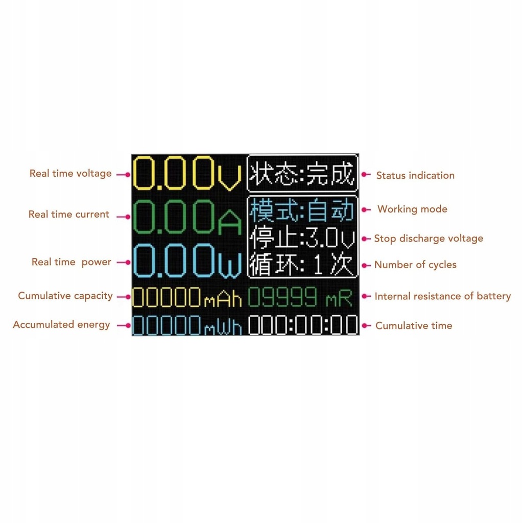 - Zakres pomiaru pojemności: 0 ~ 99999mAh