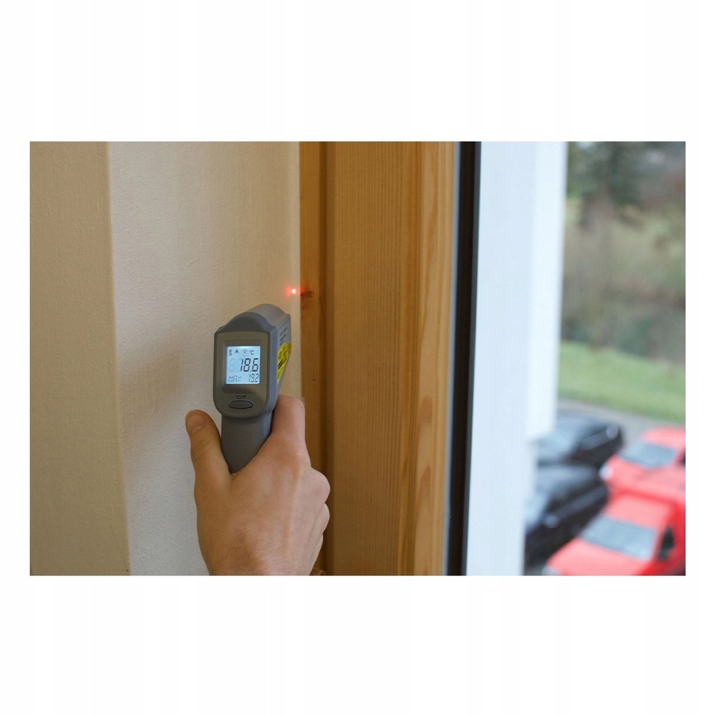 Termometr bezkontaktowy na podczerwień TFA 31.1132 BEAM pirometr. Urządzenie przeznaczone jest do wygodnego i bezpiecznego wykonywania pomiarów temperatury powierzchni szczególnie trudnodostępnych, gorących, itp. W celu ułatwienia ukierunkowania termometru na wskazaną powierzchnię termometr jest wyposażony we wskaźnik laserowy. W tylnej części urządzenia znajduje się podświetlany wyświetlacz z funkcją automatycznego wyłączania urządzenia po upływie 15 s bezczynności.