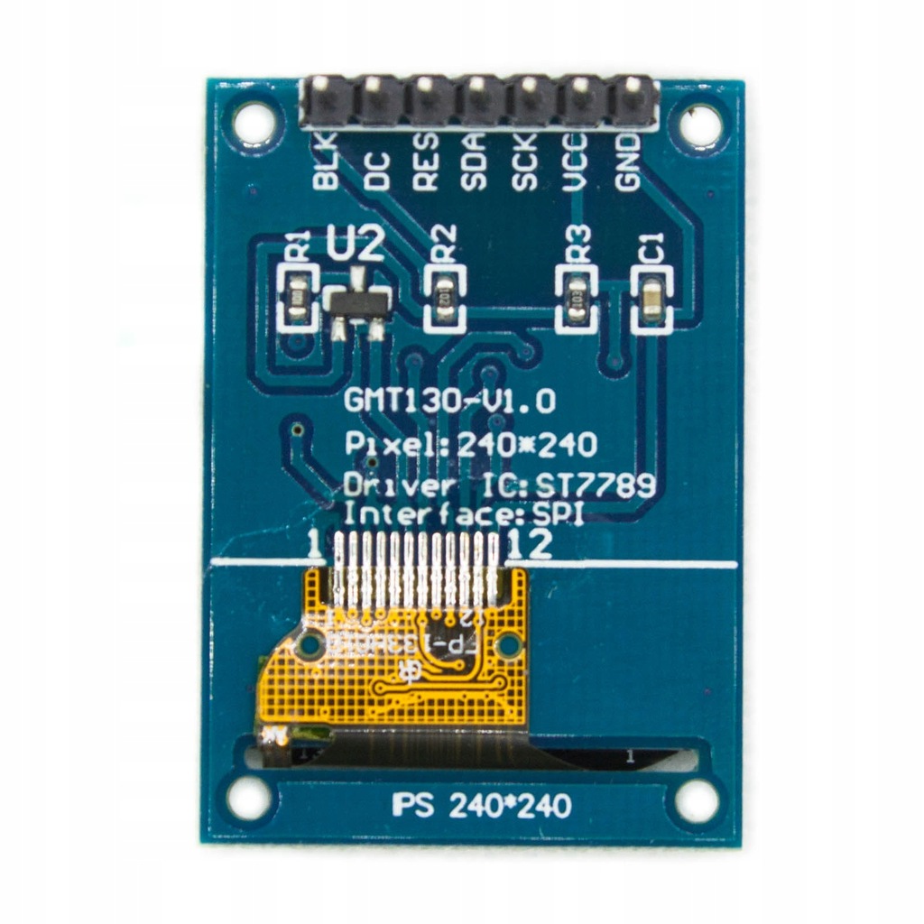 Moduł z wyświetlaczem TFT IPS o przekątnej 1,3" i rozdzielczości 240x240 pikseli. Dzięki wbudowanemu kontrolerowi, sterowanie obrazem jest niesamowicie proste. Dodatkowo kontroler zapewnia komunikację po interfejsie SPI, więc wymagana ilość pinów mikrokontrolera jest niewielka.