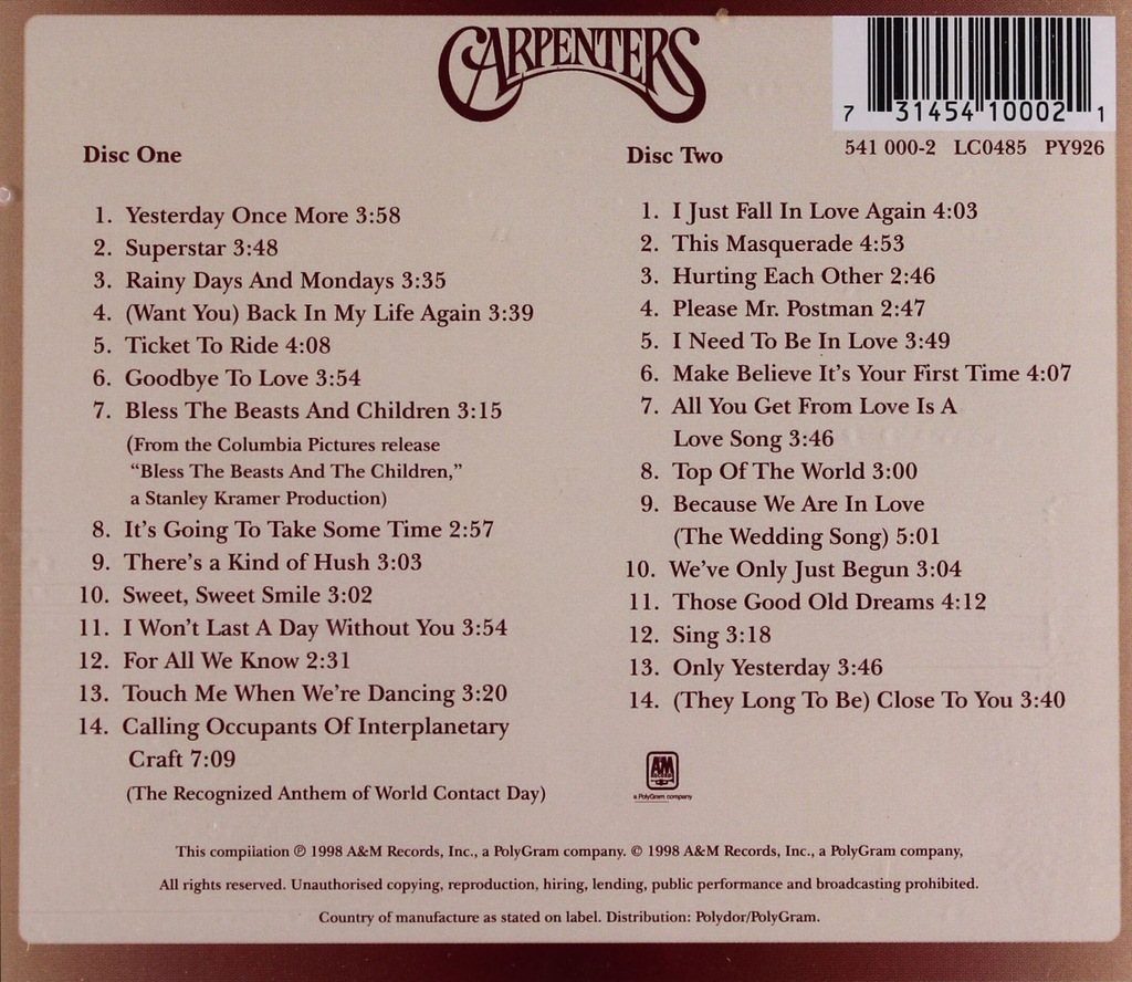 - 21. All You Get From Love Is A Love Song - Carpenters