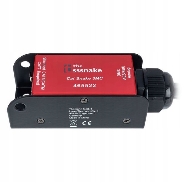 Pasywny rozdzielacz The sssnake Cat Snake 3MC umożliwia rozdzielenie sygnału z jednego gniazda RJ45 na cztery wyjścia XLR 3-biegunowe (męskie). Dzięki zastosowaniu czterech par żył plus ekranu kabla internetowego, pozwala przesyłać do 4 analogowych sygnałów jednocześnie, eliminując konieczność użycia kosztownych 4-kanałowych multiscorów.