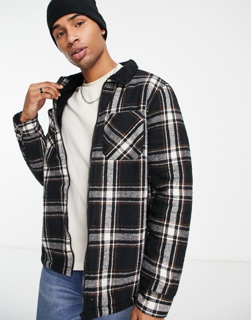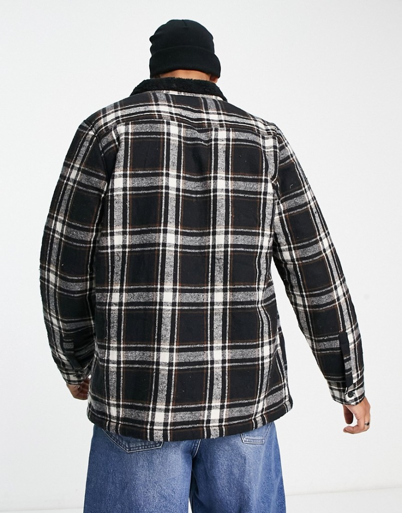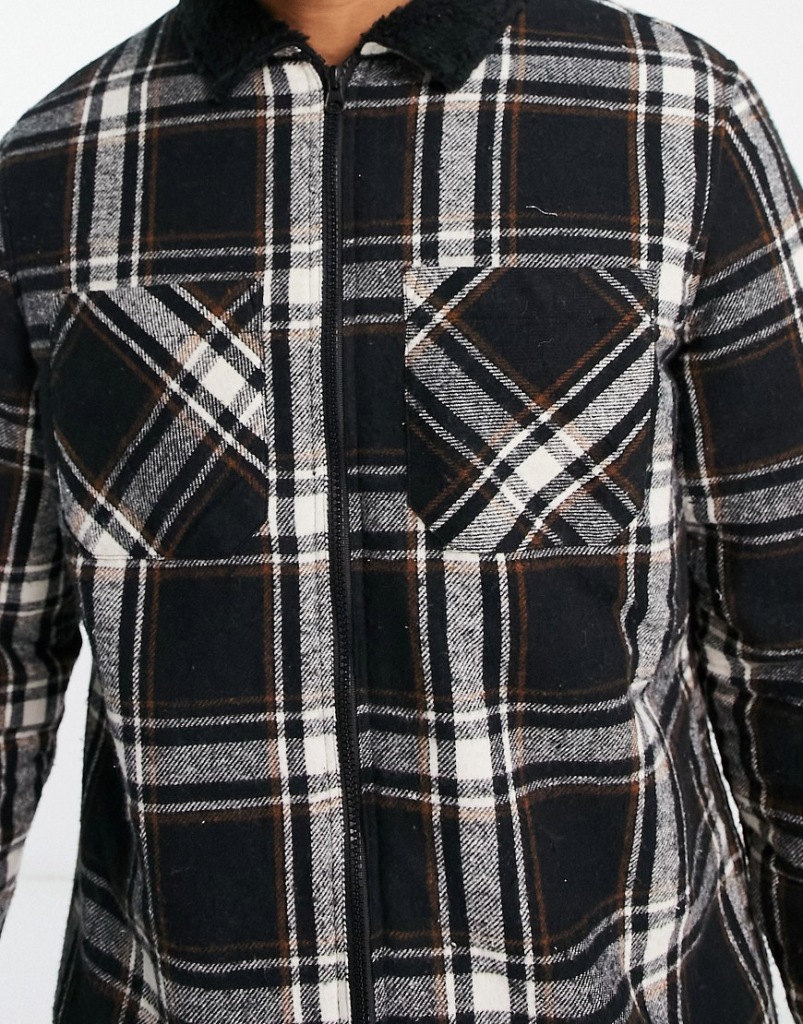 Threadbare Czarna koszula wierzchnia w kratę z podszewką z kożuszka M