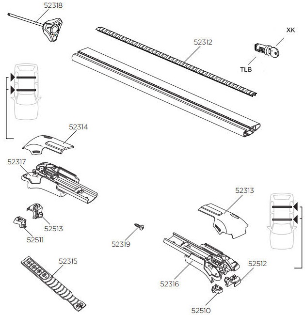 - System bagażników z zestawami dopasowującymi. W Przewodniku dla kupujących znajdziesz zestaw odpowiedni do Twojego auta.