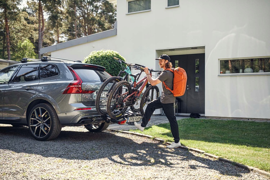 - Łatwe mocowanie rowerów przy użyciu odłączanych ramion z zamykanymi gałkami Thule AcuTight, które kliknięciem sygnalizują, że osiągnięto optymalną siłę mocowania