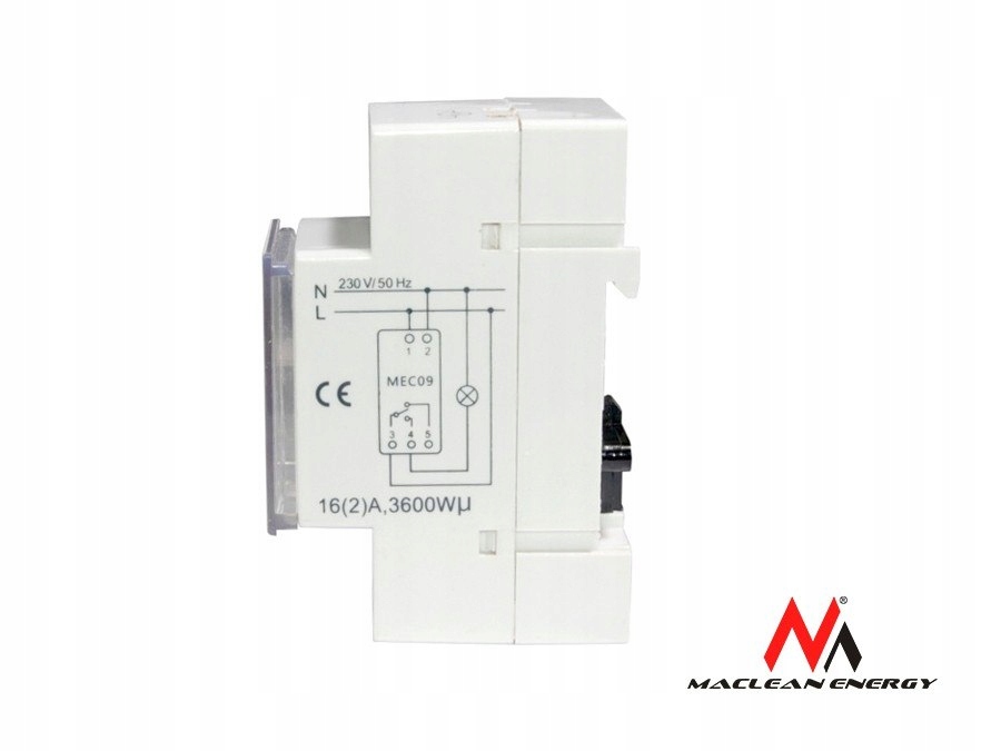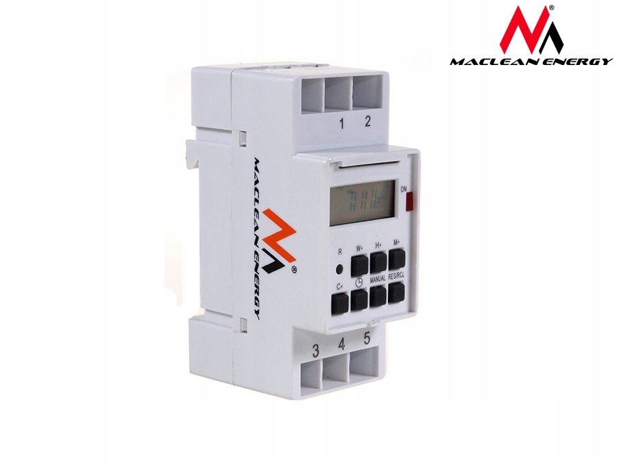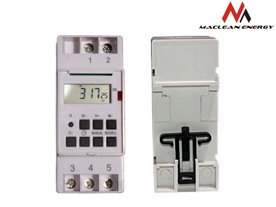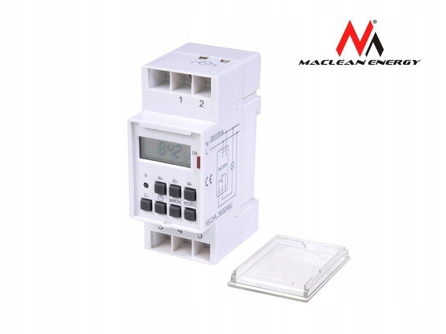 Timer cyfrowy Maclean Energy MCE09 na szynę DIN 10 programów 3600W max 156 programów