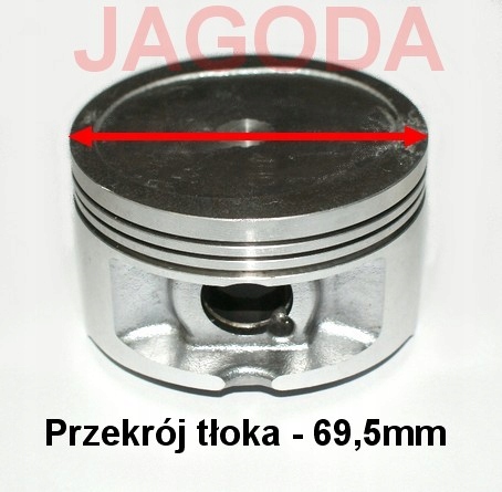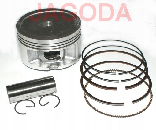 W zestawie: tłok, sworzeń, pierścienie, zabezpieczenia.