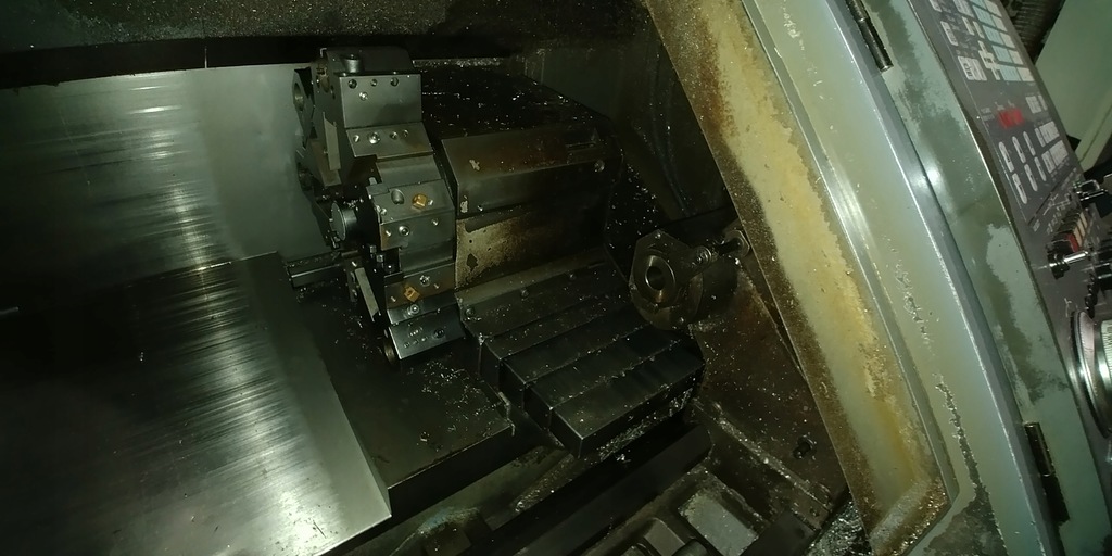Maszyna wyposażona w sonde pomiarową i transporter wiórów , wyrzutnik detali