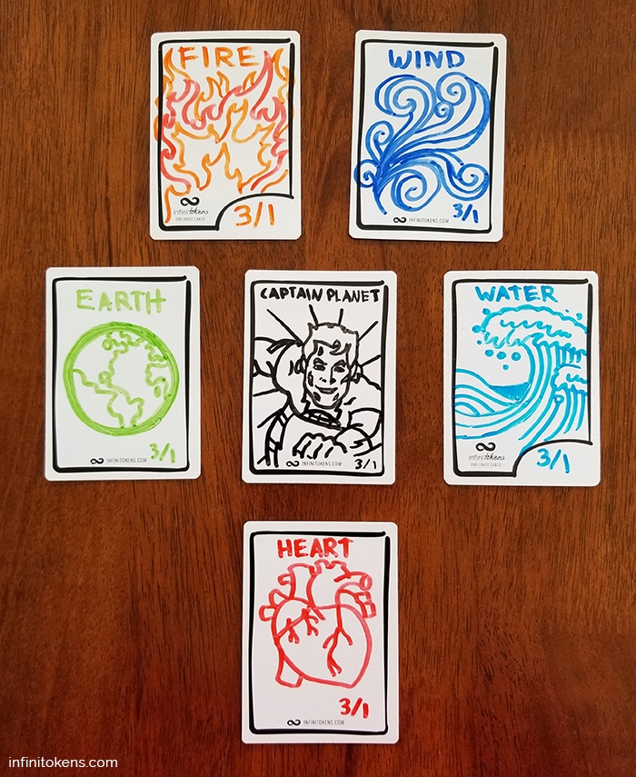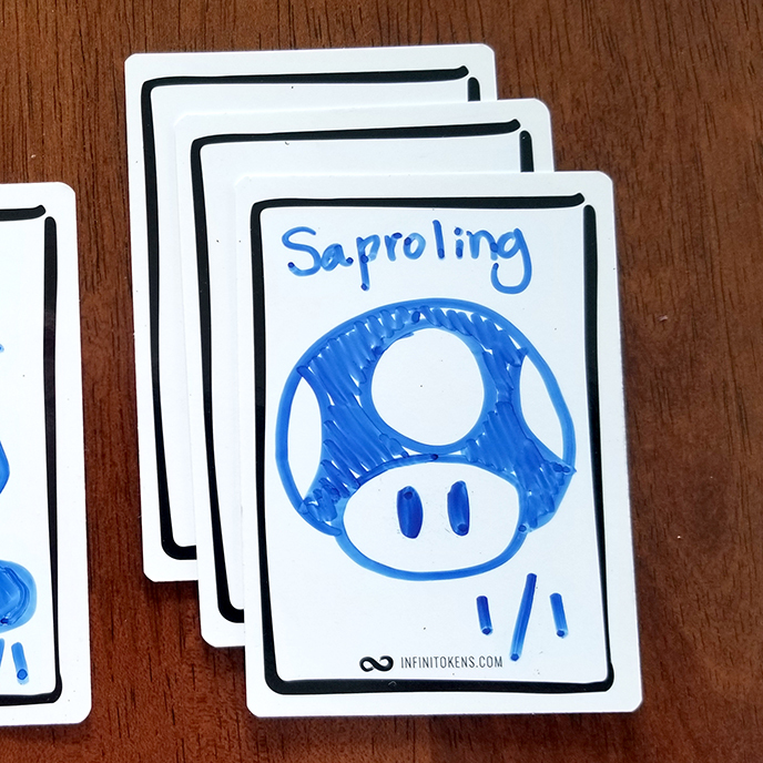 - Jeśli chcesz zrobić kilka kopii takiego samego tokena ułóż je na sobie (tak aby było widoczne ile ich jest), a na wierzchniej karcie narysuj to czego potrzebujesz.