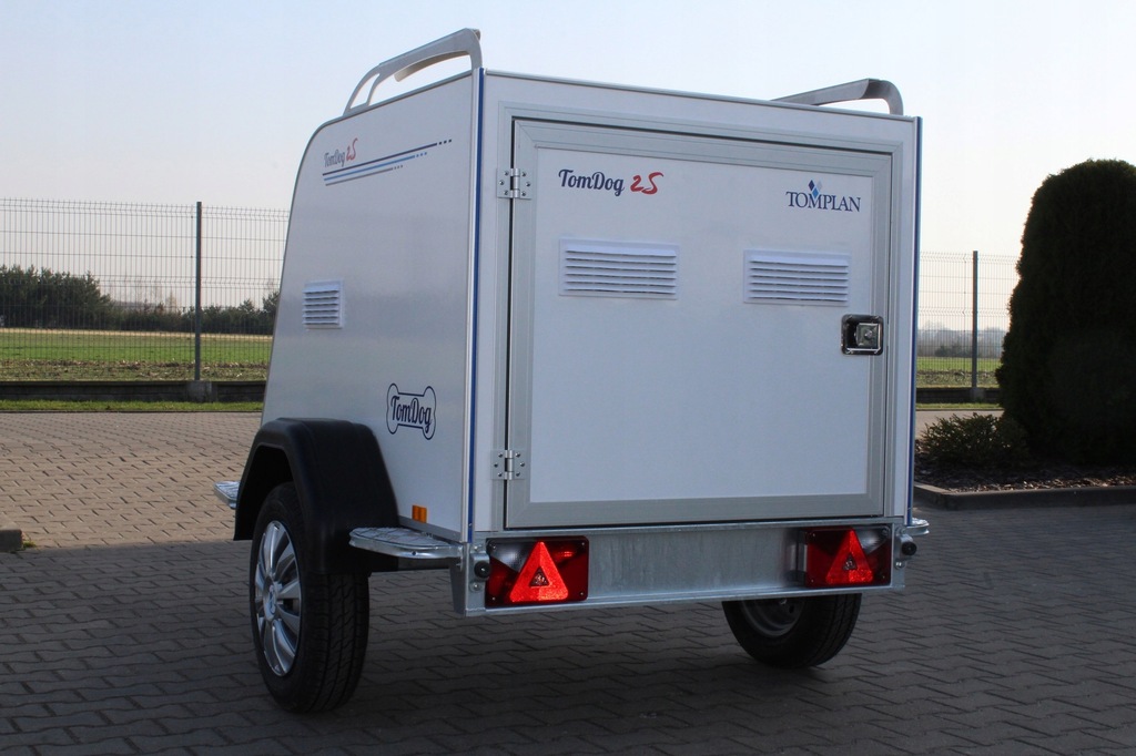 Lekkie przyczepy do transportu małych i średnich zwierząt np. psów, lisów są nowatorskim rozwiązaniem, charakteryzującym się oryginalnym designem i doskonałymi właściwościami izolacyjnymi, które sprawdzają się zarówno w niskich jak i wysokich temperaturach. Dzięki wyciszonej, szczelnej i wentylowanej konstrukcji przewożone zwierzęta czują się komfortowo i bezpiecznie. Proponujemy przyczepy typach: s - w kształcie małej przyczepy kempingowej oraz e - w kształcie tradycyjnym (prostokątnym).