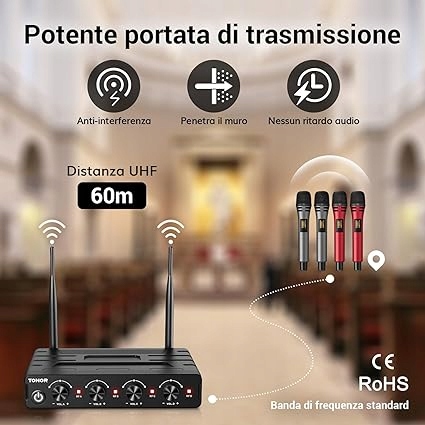 Duży zasięg łączności bezprzewodowej: Ciesz się swobodą łączności bezprzewodowej dzięki naszemu odbiornikowi o zasięgu 60 metrów, który zapewnia maksymalną swobodę podczas występu. Idealne na karaoke, spotkania kościelne, wesela, spotkania i konferencje. Nieograniczone i nieprzerwane prezentacje, zarówno wewnątrz, jak i na zewnątrz.