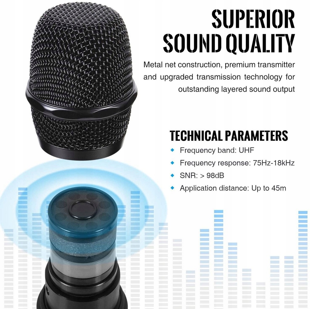 - DOSKONAŁA JAKOŚĆ DŹWIĘKU, SZEROKIE ZASTOSOWANIE - nowy, zmodernizowany mikrofon bezprzewodowy TONOR jest teraz jeszcze lepszy dzięki lepszej jakości dźwięku, ulepszonej technologii transmisji, co skutkuje warstwowym wyjściem dźwiękowym. Może być doskonale używany do karaoke z przyjaciółmi i rodziną, imprez, kościoła, DJ,wesela, spotkania biznesowe, zajęcia w klasie, występy na zewnątrz lub wewnątrz sceny itp.