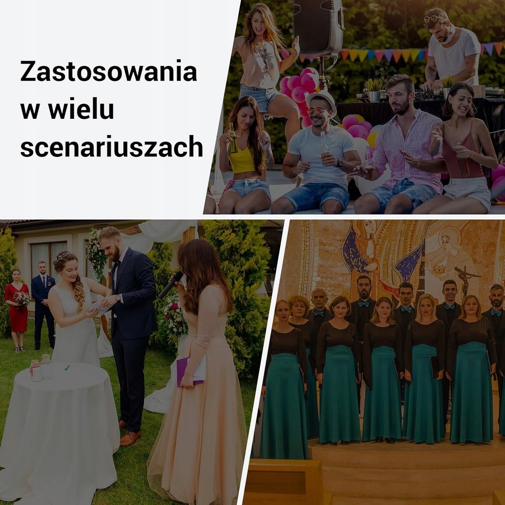 Potężny zasięg bezprzewodowy Dzięki zasięgowi transmisji do 60 m możesz swobodnie poruszać się po scenie, sali weselnej czy kościele. Stabilny sygnał, brak opóźnień i funkcje antyzakłóceniowe to gwarancja niezawodności zarówno w pomieszczeniach, jak i na świeżym powietrzu.