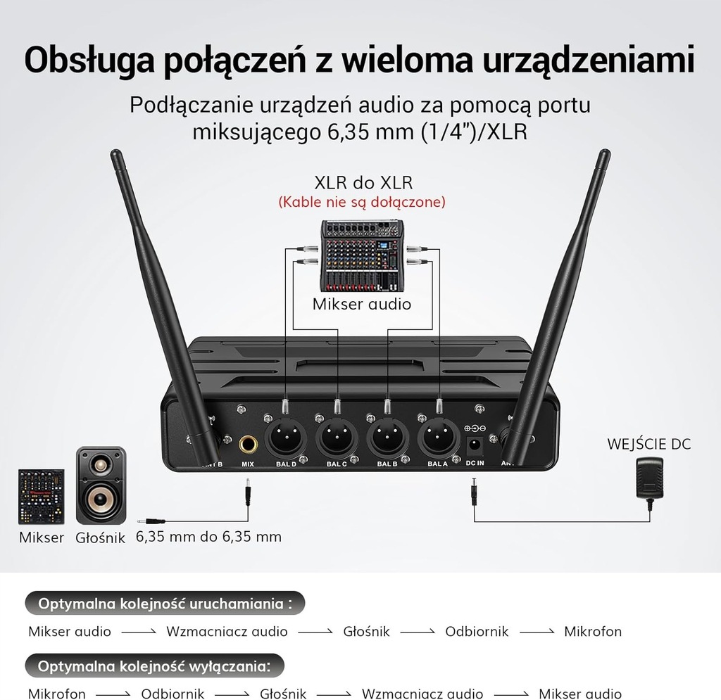 - Zestaw zawiera: 4 x mikrofon ręczny + odbiornik