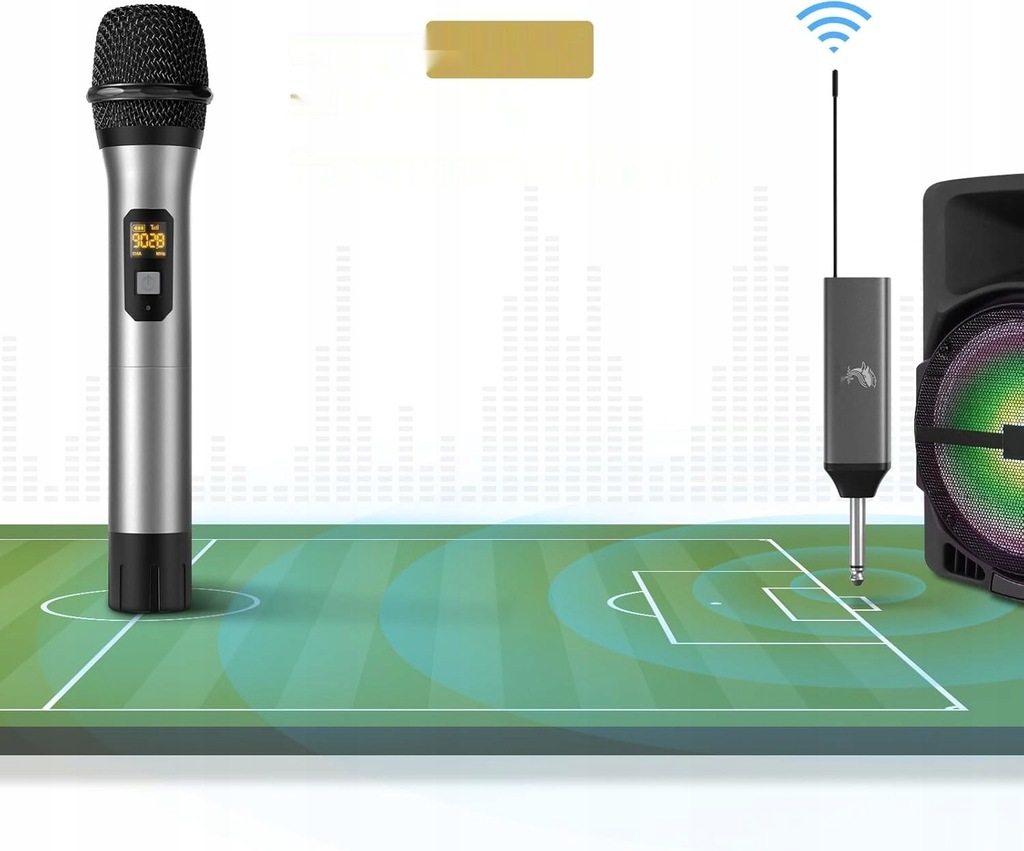 Mikrofon doskonale nadaje się do wszelkiego rodzaju imprez i wydarzeń, gdzie potrzebna jest mobilność i wysoka jakość dźwięku. Warto pamiętać, że każdy mikrofon wymaga dwóch baterii AA (nie dołączone do zestawu).