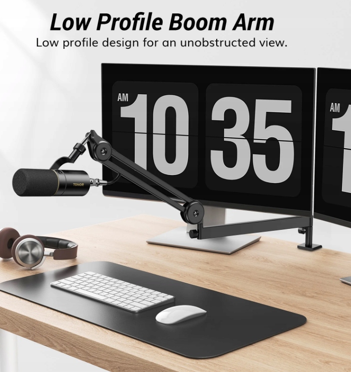 Konstrukcja Low Profile: Wysięgnik mikrofonu T40LP może wystawać od dołu ekranu komputera, zapewniając niezakłócony widok i wyraźną linię wzroku. Jego smukła i opływowa konstrukcja pomaga stworzyć przestrzeń roboczą bez bałaganu. Ponadto ukryta konstrukcja sprężyny skutecznie zapobiega hałasowi spowodowanemu rezonansem sprężyny podczas użytkowania.