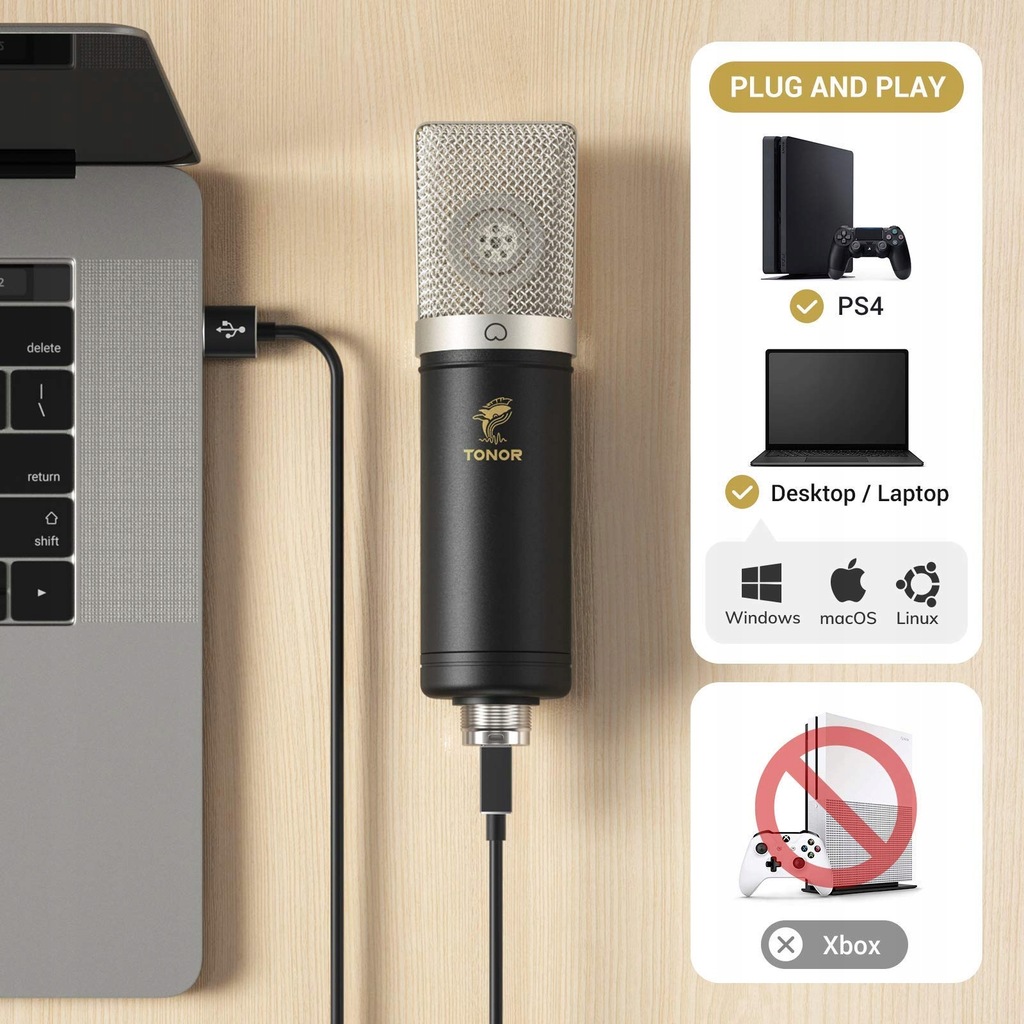 - nazwa przedmiotu: TONOR Zestaw mikrofonów USB, mikrofon kondensatorowy, 192 kHz, 24 bity, plug and play, mikrofon do podcastów, YouTube Video, Stream, Voice Over, TC-2030