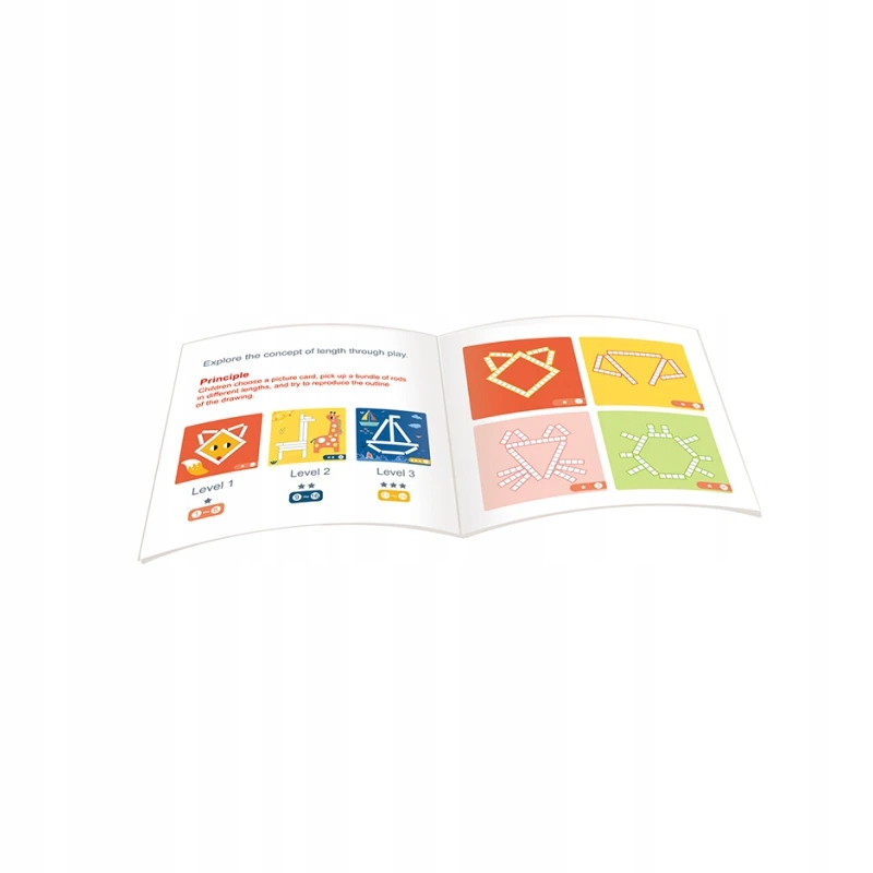 - - w zestawie 49 elementów: książeczka z różnymi wzorami, pudełko oraz klocki magnetyczne,