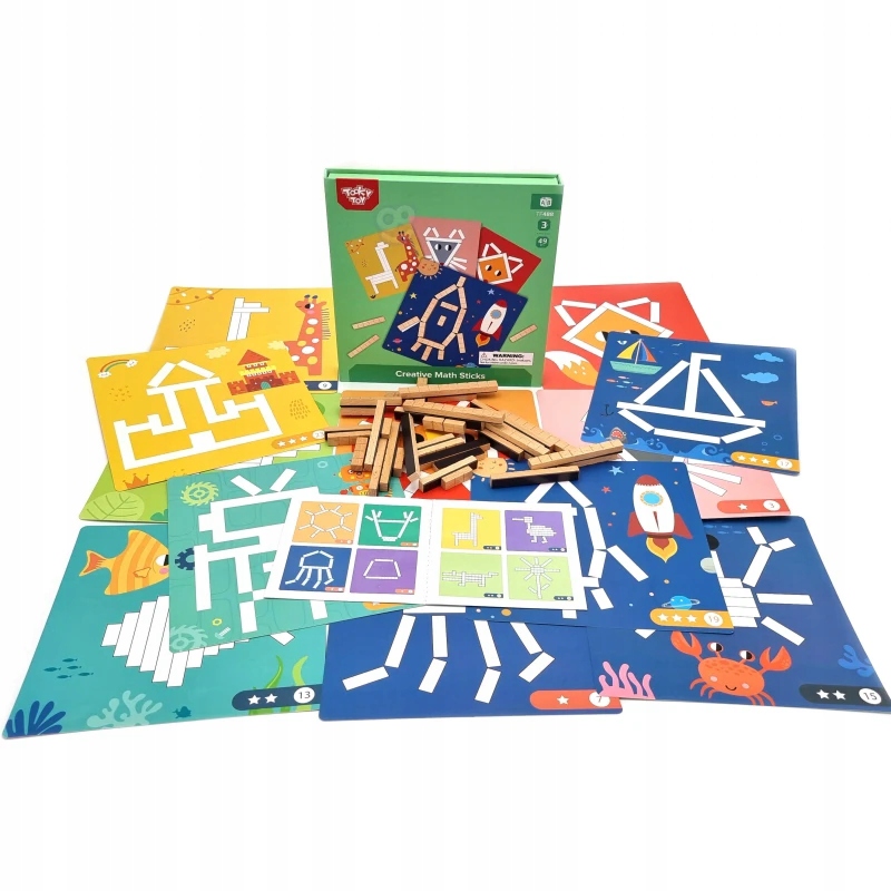 Drewniane magnetyczne klocuszki od Tooky Toy to dobrej zabawy! Klocki można układać na wielu planszach, w różnych kombinacjach co z pewnością zapewni nieskończone godziny zabawy Zabawka nadaje się do gry samemu, bądź w grupie Można układać je na załączonych w zestawie planszach, według wzorów lub samodzielnie, według własnego pomysłu Gra polega na ułożeniu według konkretnego wzoru z klocków różnych zwierzątek Taka zabawka fantastycznie rozwija kreatywność i wyobraźnie oraz logiczne myślenie malucha Do dyspozycji dzieci jest 12 dwustronnych zadrukowanych arkuszy, 36 sztyftów magnetycznych (różnej długości) Pudełko magnetyczne i patyczki pomogą w utrzymaniu obrazu w odpowiedniej pozycji.