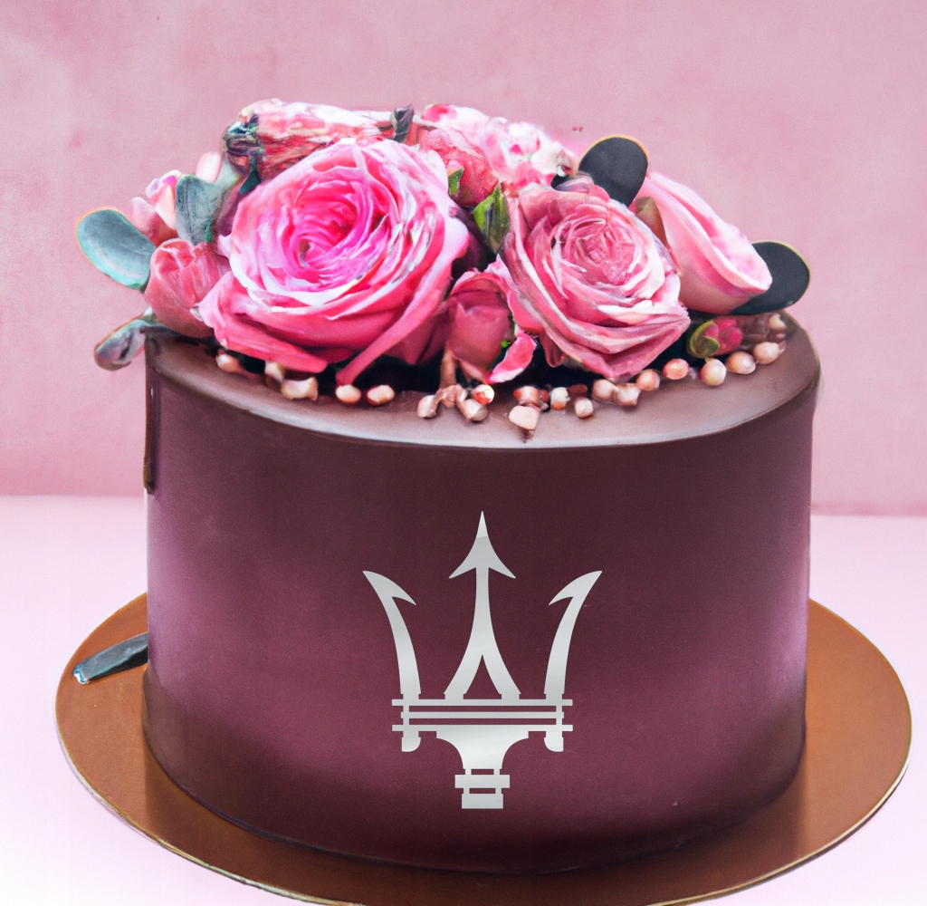 Topper na bok tortu - grafika znaczek maserati - plexi srebrne lustro.