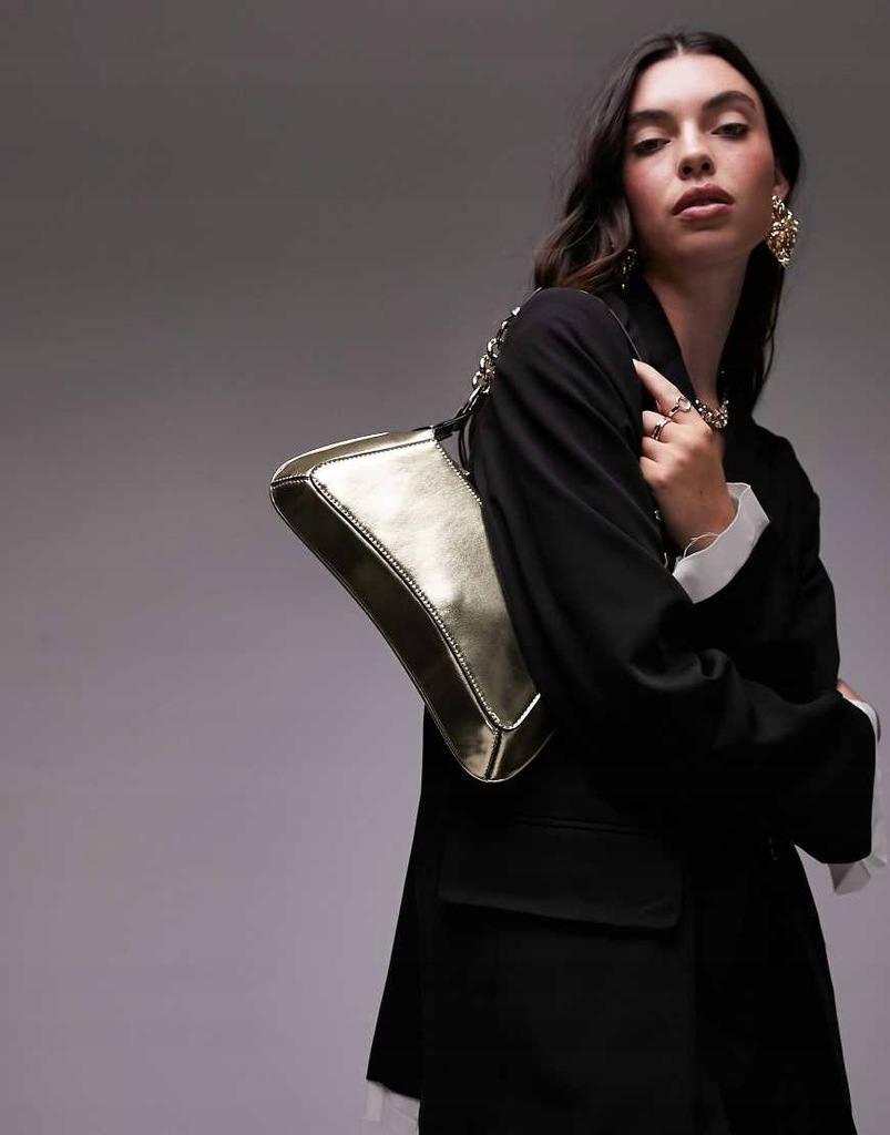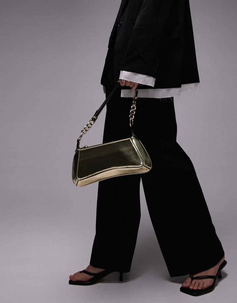 Topshop Sisi Złota torebka na ramię z ozdobnym łańcuchem