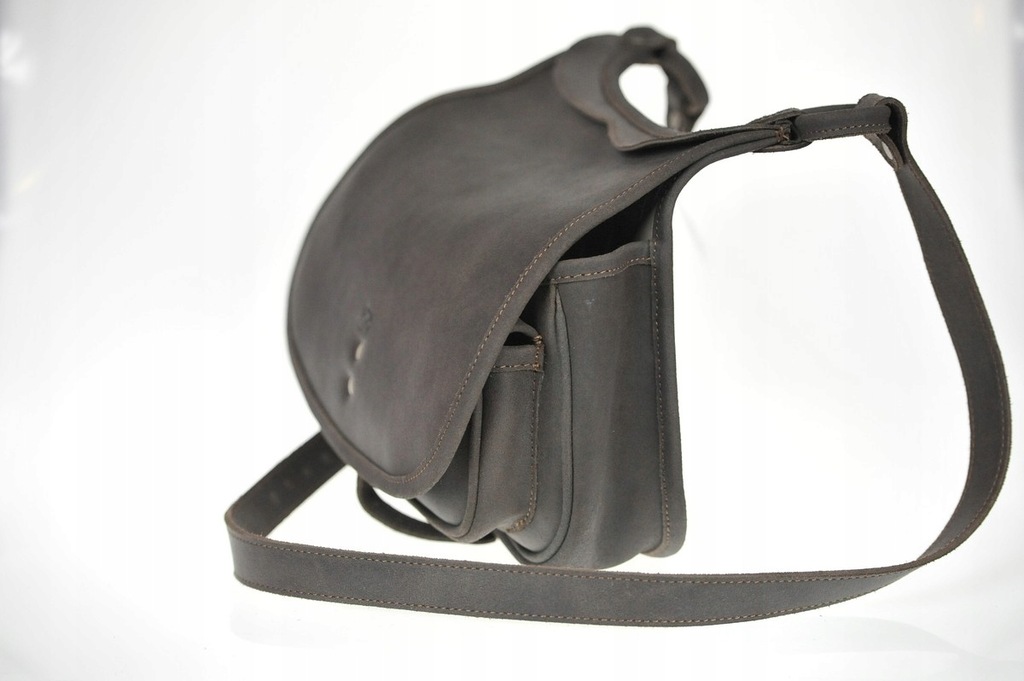 Torba wykonana jest całkowicie ze skóry naturalnej. Na zewnątrz przyszyta jest pojemna kieszeń. Wewnątrz torby jest mała dyskretna kieszeń na zasuwak. Zgrabna, ładna torba w sam raz dla kobiety i nie tylko. Kolor brązowy.