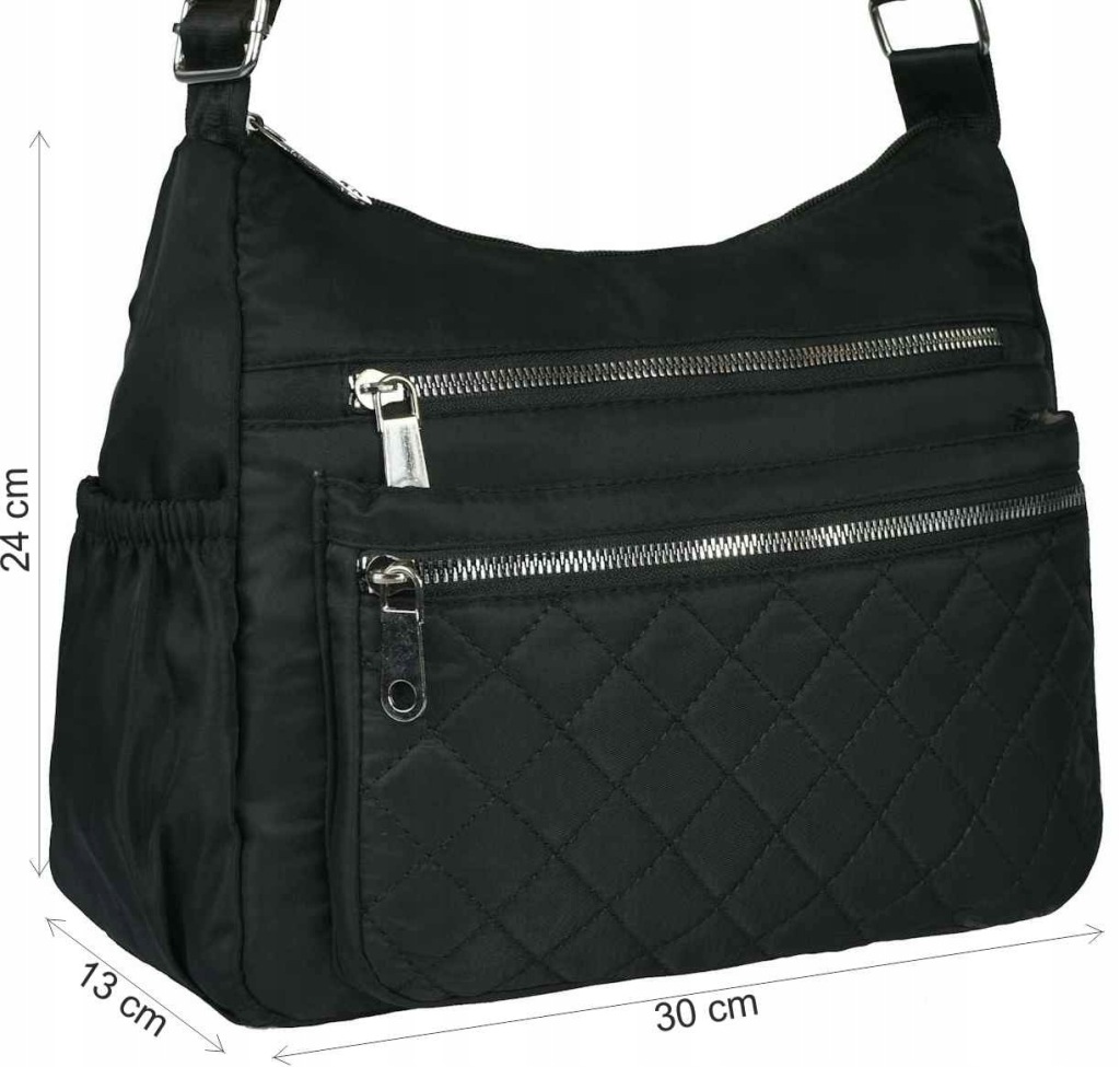 różnej wielkości kieszeni w tym 7 na suwak. W środku torby