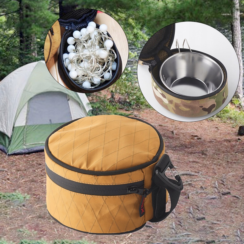 Torba Do Przechowywania Cup Ręczny Grill Do Wędrówek Z Plecakiem Na Kempingu Z Haczykami Brązowy Żółty