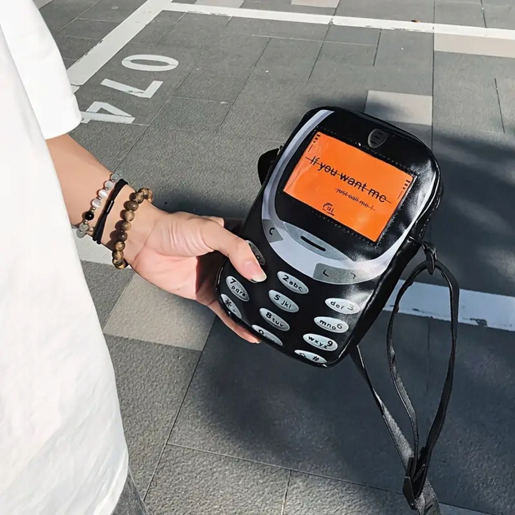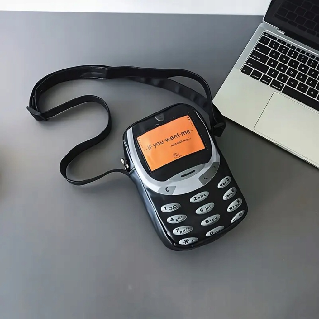 Wyjątkowy dodatek, który przyciąga spojrzenia! Torebka inspirowana kultowym telefonem z lat 2000 to idealne połączenie stylu retro, miejskiego luzu i odrobiny humoru. Pomarańczowy ekran z napisem „If you want me – call me” mówi wszystko.